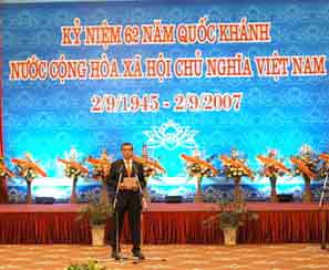 Phát biểu tại tiệc chiêu đãi Đoàn ngoại giao, Thủ tướng Chính phủ Nguyễn Tấn Dũng nhấn mạnh: Trong 62 năm qua, dưới sự lãnh đạo của Đảng Cộng sản Việt Nam, toàn thể dân tộc Việt Nam đã đoàn kết một lòng, vượt qua muôn vàn gian khổ, dũng cảm chiến đấu hy sinh giành độc lập dân tộc, thống nhất Tổ quốc. Trong suốt chặng đường đấu tranh và phát triển của mình, Chính phủ và nhân dân Việt Nam luôn nhận được sự giúp đỡ quý báu, có hiệu quả của Chính phủ và nhân dân các nước trên thế giới, chính sự giúp đỡ này đã tạo niềm tin và sức mạnh giúp nhân dân Việt Nam thực hiện thắng lợi mục tiêu chính nghĩa và cao đẹp của mình.