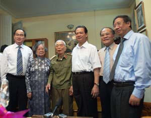 (Website Chính phủ) - Nhân dịp Đại tướng Võ Nguyên Giáp tròn 96 tuổi (25/8/1911 - 25/8/2007), chiều 25/8, Thủ tướng Chính phủ Nguyễn Tấn Dũng dẫn đầu Đoàn đại biểu Chính phủ đã tới thăm và chúc thọ Đại tướng.