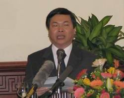 Bộ trưởng Vũ Huy Hoàng báo cáo tại Hội nghị - Ảnh Website Chính phủ
