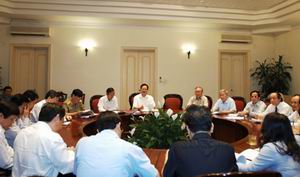 (Cổng TTĐT Chính phủ) - Sáng 20/4, Thủ tướng Nguyễn Tấn Dũng đã chủ trì cuộc họp với các Bộ, ngành chức năng và lãnh đạo thành phố Hồ Chí Minh về kế hoạch triển khai đảm bảo an ninh trật tự Lễ rước đuốc Olympic Bắc Kinh tại thành phố Hồ Chí Minh và các ngày lễ 30/4, 1/5.