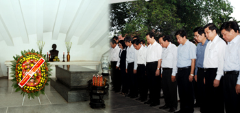 Thủ tướng Nguyễn Tấn Dũng cùng Đoàn công tác Chính phủ tới viếng cụ Phó Bảng Nguyễn Sinh Sắc - thân sinh Chủ tịch Hồ Chí MInh - Ảnh: Chinhphu.vn
