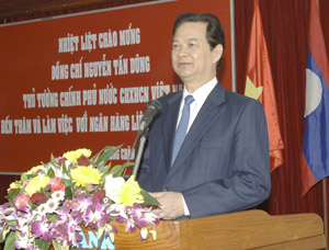 Thủ tướng Nguyễn Tấn Dũng: Ngân hàng Liên doanh Việt - Lào đã góp phần thúc đẩy hợp phát triển tác toàn diện giữa hai nước - Ảnh Cổng TTĐT Chính phủ