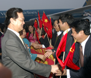 Chào đón Thủ tướng Nguyễn Tấn Dũng và Đoàn cấp cao Chính phủ Việt Nam tại sân bay Bắc Kinh - Ảnh: Cổng TTĐT Chính phủ