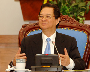 Thủ tướng Nguyễn Tấn Dũng chủ trì cuộc làm việc với hai doanh nghiệp viễn thông hàng đầu quốc gia - Ảnh Chinhphu.vn
