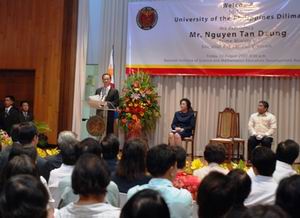Thủ tướng Nguyễn Tấn Dũng nói chuyện trước đông đảo các giáo sư và sinh viên Trường Đại học Tổng hợp quốc gia Philippines - Ảnh: Website Chính phủ