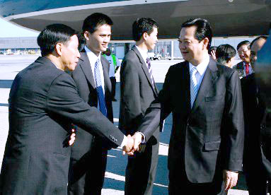 Ra sân bay J.F.Kenedy đón Thủ tướng Nguyễn Tấn Dũng và Đoàn cấp cao Chính phủ Việt Nam có Đại sứ Việt Nam tại Hoa Kỳ Nguyễn Tâm Chiến; Đại sứ, Trưởng Phái đoàn Việt Nam tại Liên hợp quốc Lê Lương Minh và Phu nhân cùng nhiều cán bộ nhân viên Đại sứ quán Việt Nam tại Mỹ và Phái đoàn Việt Nam tại LHQ.