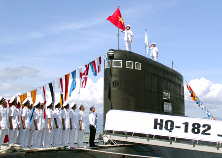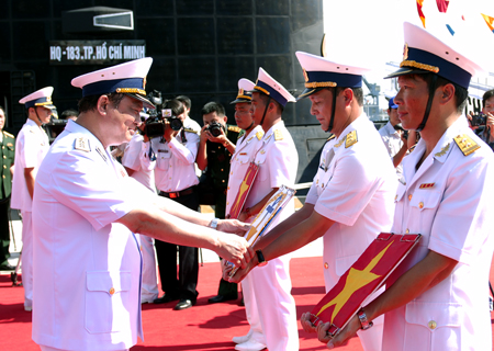 Trong không khí trang nghiêm đầy xúc động, Thủ tướng Nguyễn Tấn Dũng đã trao Quốc kỳ để giương lên hai tàu ngầm hiện đại HQ-182 mang tên Hà Nội và tàu HQ-183 mang tên TP. Hồ Chí Minh.