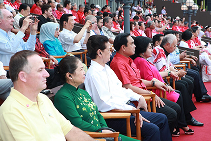Thủ tướng Nguyễn Tấn Dũng và Phu nhân cùng các đại biểu dự Lễ kỷ niệm 50 năm Quốc khánh Singapore. Ảnh: VGP