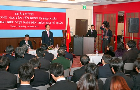 (Chinhphu.vn) – Nhân chuyến công tác tại Nhật Bản, sáng 15/12, Thủ tướng Nguyễn Tấn Dũng đã đến thăm và nói chuyện thân mật với cán bộ, nhân viên Đại sứ quán, đại diện cộng đồng người Việt Nam đang học tập, làm ăn và sinh sống tại Nhật Bản.