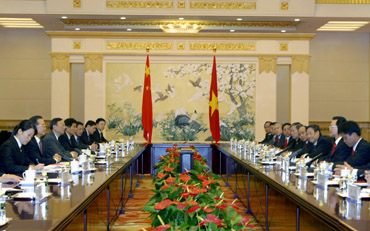 Đoàn cấp cao Chính phủ Việt Nam do Thủ tướng Nguyễn Tấn Dũng dẫn đầu hội đàm với Đoàn cấp cao Chính phủ CHND Trung Hoa do Thủ tướng Ôn Gia Bảo dẫn đầu - Ảnh: Cổng TTĐT Chính phủ