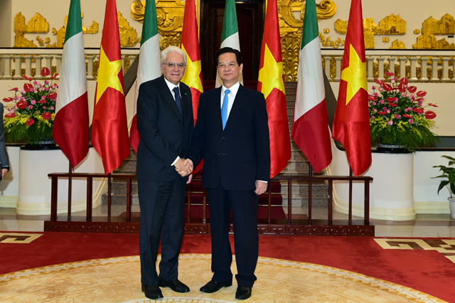 Thay mặt Chính phủ, Thủ tướng Nguyễn Tấn Dũng nhiệt liệt chào mừng Tổng thống Sergio Mattarella và đoàn đại biểu cấp cao Italy thăm cấp nhà nước tới Việt Nam - chuyến thăm Việt Nam đầu tiên của một Tổng thống Italy; coi đây là cột mốc quan trọng nhằm tăng cường quan hệ đối tác chiến lược song phương, đem lại lợi ích cho nhân dân hai nước.