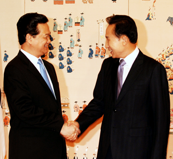 Tổng thống Lee Myung-bac hoan nghênh Thủ tướng Nguyễn Tấn Dũng lần đầu tiên thăm chính thức Hàn Quốc, coi đây là sự kiện có ý nghĩa quan trọng góp phần thúc đẩy quan hệ hai nước tiếp tục phát triển sâu sắc hơn nữa trong thời gian tới.