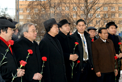 Trước cuộc gặp Tổng thống Medvedev, Thủ tướng Nguyễn Tấn Dũng và Đoàn cấp cao Chính phủ Việt Nam đã đến đặt hoa trước tượng đài Bác Hồ bên Quảng trường Hồ Chí Minh ở Thủ đô Matxcơva./.