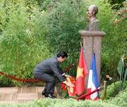 Thủ tướng Nguyễn Tấn Dũng đặt hoa trước Tượng đài Bác Hồ ở thành phố Montreuil - Ảnh Website Chính phủ