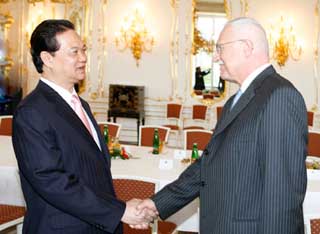 Chiều 13/9, Thủ tướng Nguyễn Tấn Dũng đã có cuộc hội kiến với Tổng thống Cộng hòa Séc Vaclav Klaus. Thủ tướng đã bày tỏ tình cảm và lòng biết ơn sâu sắc đối với sự giúp đỡ quý báu và hiệu quả mà Nhà nước và nhân dân Séc đã dành cho Việt Nam trong công cuộc bảo vệ và xây dựng đất nước trước đây, cũng như trong công cuộc phát triển và hội nhập quốc tế ngày nay.