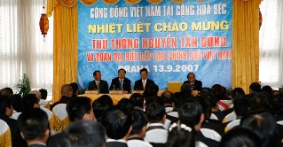 Thủ tướng Nguyễn Tấn Dũng chia sẻ những thuận lợi, khó khăn của đồng bào và vui mừng khi thấy người Việt ở Séc luôn thương yêu, đùm bọc, giúp đỡ lẫn nhau về tinh thần cũng như vật chất, chấp hành nghiêm chỉnh luật pháp sở tại, sống hữu nghị, chan hòa với nhân dân nước bạn và có những hoạt động tích cực hướng về Tổ quốc.
