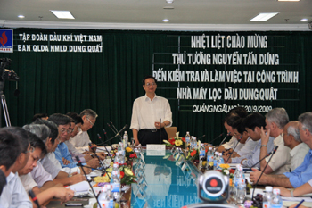 | | Thủ tướng Nguyễn Tấn Dũng làm việc với Ban Quản lý dự án, đại diện nhà thầu và các bên liên quan - Ảnh Chinhphu.vn | Tại buổi làm việc, sau khi nghe Ban Quản lý dự án Nhà máy lọc dầu Dung Quất (NMLD) báo cáo tình hình thực hiện dự án cũng như những vấn đề liên quan và biện pháp khắc phục sự cố kỹ thuật, Thủ tướng Nguyễn Tấn Dũng một lần nữa khẳng định tầm quan trọng của Dự án NMLD Dung Quất. Đây là dự án cấp quốc gia. Mặc dù vẫn còn đang trong giai đoạn vận hành chạy thử, nhưng ngày 22/2/2009, nhà máy cho ra dòng sản phẩm đầu tiên đạt tiêu chuẩn thiết kế mang thương hiệu Việt Nam như xăng, dầu diezel, dầu hỏa, dầu FO, propylene... Thủ tướng biểu dương những nỗ lực và tinh thần trách nhiệm của chủ đầu tư, nhà thầu và các đơn vị cung ứng thiết bị đã phối hợp chặt chẽ tìm nguyên nhân và khắc phục sự cố. Thủ tướng lưu ý Ban Quản lý dự án, Hội đồng nghiệm thu khẩn trương xử lý tất cả các lỗi kỹ thuật, trước khi bàn giao chính thức nhà máy phải thực hiện nghiêm túc việc nghiệm thu, lập qui trình vận hành và chuẩn bị nguồn nhân lực, đảm bảo nhà máy hoạt động thông suốt, đạt chất lượng như đã phê duyệt. Thủ tướng yêu cầu Ban quản lý dự án và Hội động nghiệm thu phải rà soát thật kỹ trước khi vận hành trở lại vào ngày 30/9 sắp tới.  | | Thủ Tướng Nguyễn Tấn Dũng nghe báo cáo việc khắc phục lỗi kỹ thuật tại phân xưởng Cracking - Ảnh Chinhphu.vn | Theo báo cáo của Ban Quản lý dự án NMLD Dung Quất, ngày 18/8, nhà máy phải dừng vận hành do sự cố kỹ thuật hỏng thiết bị van tại cụm thiết bị tái sinh xúc tác phân xưởng cracking xúc tác. Sự cố được xác định là do rò rỉ trên thân van bít PV- 1501 (do nhà cung cấp Remosa - Ý sản xuất) tại phân xưởng RFCC. Hiện nay, chủ đầu tư cùng Nhà thầu Technip đang nỗ lực thực hiện các giải pháp sửa chữa, khắc phục sự cố để nhanh chóng đưa nhà máy hoạt động trở lại. Theo kế hoạch, ngày 20/9 chuyển van ra hiện trường và lắp đặt van vào phân xưởng RFCC; từ ngày 26- 30/9 bắt đầu gia nhiệt, đưa xúc tác vào và tuần hoàn xúc tác trong phân xưởng RFCC. Ngày 30/9 đưa nguyên liệu vào phân xưởng RFCC chế biến với công suất 65%. Tính đến khi dừng vận hành NMLD Dung Quất đã sản xuất được 38.888 tấn LPG, gần 199.000 tấn xăng A92, hơn 142.000 tấn dầu diêzel, hơn 38.000 tấn dầu hỏa và hơn 18.000 tấn dầu đốt lò (F.O). Cùng ngày, Thủ tướng Nguyễn Tấn Dũng đã đến thăm công trình nhà máy Polypropylene của Tập đoàn Dầu khí Quốc gia Việt Nam đang triển khai thực hiện xây dựng bên cạnh NMLD Dung Quất. Thủ tướng Nguyễn Tấn Dũng yêu cầu các đơn vị thi công đẩy nhanh tiến độ thi công Nhà máy sản xuất Polypropylen, phấn đấu đến tháng 1/2010 hoàn thành và tháng 2/2010 bàn giao. Đức Hoa |