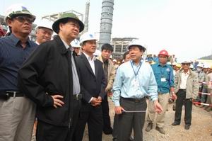 Thủ tướng Nguyễn Tấn Dũng đi kiểm tra tiến độ thi công công trình Nhà máy lọc dầu Dung Quất - Ảnh Website Chính phủ