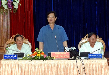 Thủ tướng Chính phủ Nguyễn Tấn Dũng làm việc với lãnh đạo chủ chốt tỉnh Quảng Nam về tình hình kinh tế-xã hội của địa phương. Ảnh VGP/Nhật Bắc