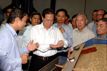 | | Thủ tướng Nguyễn Tấn Dũng nói chuyện với đơn vị thi công trên công trường - Ảnh Chinhphu.vn | Phát biểu trên công trường tại huyện Bảo Lâm, tỉnh Lâm Đồng, Thủ tướng Nguyễn Tấn Dũng nêu rõ, tổ hợp bauxit – nhôm Lâm Đồng là dự án trọng điểm, mở đầu cho việc xây dựng ngành công nghiệp bauxit, alumin, nhôm, phục vụ phát triển kinh tế đất nước nói chung, góp phần phát triển kinh tế - xã hội Tây Nguyên nói riêng. Thủ tướng Nguyễn Tấn Dũng biểu dương Tập đoàn Than Khoáng sản Việt Nam (TKV), tỉnh Lâm Đồng, các nhà thầu thời gian qua có nhiều cố gắng triển khai dự án đúng tiến độ, đúng phê duyệt của Thủ tướng Chính phủ; cơ bản hoàn thành thi công phần móng các hạng mục công trình chính (khu nghiền, khu tiền khử silic, khu hòa tách, khu lắng rửa bùn đỏ, khu nhà máy điện…) của nhà máy Alumin.  | | Công trường xây dựng tổ hợp bauxit – nhôm Lâm Đồng - Ảnh Chinhphu.vn | Tổng giá trị khối lượng thực hiện trong 7 tháng đầu năm 2009 của gói thầu đạt hơn 816 tỷ đồng (đạt 43,8% kế hoạch năm). Công tác đền bù giải phóng mặt bằng được trên 505 ha; đã xây dựng xong cơ sở hạ tầng (đường, điện, nước) của khu tái định cư đủ chỗ cho khoảng 730 hộ gia đình (giai đoạn 1). Quản lý tốt lao động người nước ngoài và lao động Việt Nam làm việc trên công trường. Với qui mô 630.000 tấn sản phẩm alumin/năm, trên dây chuyền công nghệ hiện đại Thủ tướng cho rằng dự án khi đi vào hoạt động sẽ đóng góp tích cực cho sự phát triển kinh tế đất nước nói chung và Lâm Đồng nói riêng. Thủ tướng yêu cầu nhà thầu Chalieco thực hiện đúng các cam kết, tiến độ đề ra, đồng thời nhấn mạnh, đây là công trình góp phần tăng cường mối quan hệ hữu nghị truyền thống Việt Nam – Trung Quốc.  | | Thủ tướng Nguyễn Tấn Dũng dự lễ trao tặng 26 căn nhà cho đồng bào dân tộc thiểu số nghèo - Ảnh Chinhphu.vn | Cùng ngày, Thủ tướng và Đoàn công tác Chính phủ đã dự lễ tặng 26 căn nhà cho 26 hộ đồng bào dân tộc thiểu số nghèo ở thị trấn Lộc Thắng, huyện Bảo Lâm, tỉnh Lâm Đồng. Mỗi căn nhà trị giá 87 triệu đồng, do Tập đoàn TKV tài trợ. Sắp tới, Tập đoàn TKV sẽ tặng tiếp 15 căn nhà nữa cho các đồng bào dân tộc thiểu số nghèo. Phát biểu tại buổi lễ, Thủ tướng Nguyễn Tấn Dũng cảm ơn đồng bào, dù gặp khó khăn song đã tự nguyện chấp nhận chuyển sang khu vực tái định cư mới để nhường đất cho triển khai dự án, đồng thời đề nghị UBND tỉnh Lâm Đồng, Tập đoàn TKV chăm lo tốt hơn nữa, đảm bảo cho đồng bào có cuộc sống ngày càng phát triển, có nơi ở ổn định, đất canh tác tốt, con em được tham gia làm việc tại nhà máy.  | | Thủ tướng Nguyễn Tấn Dũng thăm nhà máy sản xuất cà phê Acom Vietnam - Ảnh Chinhphu.vn | Thủ tướng cũng đến thăm Nhà máy Công Chính sản xuất gạch tuy nen theo phương pháp đúc từ bê tông nhẹ, thăm nhà máy sản xuất cà phê Acom Vietnam do Tập đoàn Ecom Coffee Group (Thụy Sỹ) đầu tư./. Việt Đông Ảnh: Nhật Bắc |