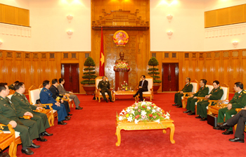 (Chinhphu.vn) – Chiều 24/3, tại Trụ sở Chính phủ, Thủ tướng Nguyễn Tấn Dũng đã tiếp Đoàn cán bộ cấp cao Quân Giải phóng Nhân dân Trung Quốc do Thượng tướng Trần Bỉnh Đức, Tổng Tham mưu trưởng dẫn đầu đang ở thăm chính thức nước ta theo lời mời của Thượng tướng Nguyễn Khắc Nghiên, Tổng Tham mưu trưởng Quân đội nhân dân Việt Nam, Thứ trưởng Bộ Quốc phòng.