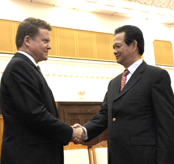 | | | Thủ tướng Nguyễn Tấn Dũng tiếp Chủ tịch Hạ viện Cộng hòa Indonesia Agung Laksono- Ảnh: Chinhphu.vn | Đẩy mạnh hợp tác kinh tế Việt Nam-Indonesia Thủ tướng Nguyễn Tấn Dũng và Chủ tịch Hạ viện Agung Laksono cùng chia sẻ quan điểm: Việt Nam và Indonesia là 2 nước có quan hệ hợp tác, hữu nghị lâu đời, mối quan hệ này được lãnh đạo và nhân dân 2 nước dày công vun đắp qua các thời kỳ. Tuy nhiên, quan hệ hợp tác kinh tế tuy có những bước phát triển mạnh, song vẫn chưa tương xứng với tiềm năng của mỗi nước, hai bên cần tiếp tục đẩy mạnh trong thời gian tới. Thủ tướng Nguyễn Tấn Dũng khẳng định, Chính phủ Việt Nam sẽ nỗ lực cùng với Chính phủ Indonesia đưa quan hệ hợp tác toàn diện giữa 2 nước ngày càng đi vào chiều sâu, hiệu quả, vì lợi ích thiết thực của nhân dân mỗi nước, vì hòa bình, ổn định và phát triển trong khu vực và trên thế giới. Thủ tướng Nguyễn Tấn Dũng cho rằng, trong thời gian tới, bên cạnh hoạt động đẩy mạnh hợp tác về kinh tế, Việt Nam và Indonesia cần tăng cường hơn nữa các hoạt động hợp tác về an ninh, tuần tra trên biển, nuôi trồng và đánh bắt thủy hải sản, cứu nạn ngư dân khi gặp thiên tai… Chủ tịch Hạ viện Agung Laksono bày tỏ tán thành và đánh giá cao các ý kiến của Thủ tướng Nguyễn Tấn Dũng; chúc mừng Việt Nam sẽ đảm nhận cương vị Chủ tịch ASEAN vào năm 2010; khẳng định Indonesia sẽ ủng hộ tích cực Việt Nam trên cương vị Chủ tịch ASEAN nhằm góp phần xây dựng cộng đồng ASEAN ngày một phồn thịnh và phát triển. | | | Thủ tướng Nguyễn Tấn Dũng và Thượng nghị sĩ Jim Webb - Ảnh: Chinhphu.vn | Tiếp tục thúc đẩy quan hệ Việt Nam-Hoa Kỳ Tiếp Thượng nghị sĩ Jim Webb, Thủ tướng Chính phủ Nguyễn Tấn Dũng cho rằng chuyến thăm và làm việc của Thượng nghị sĩ Jim Webb lần này sẽ là một dấu mốc quan trọng trong việc tiếp tục thúc đẩy quan hệ hợp tác phát triển giữa 2 nước thời gian tới. Đề cập tới những vấn đề cụ thể trong quan hệ hợp tác kinh tế song phương, Thủ tướng Nguyễn Tấn Dũng đề nghị phía Hoa Kỳ dành ưu tiên về thuế quan đối với một số mặt hàng xuất khẩu của Việt Nam vào thị trường Hoa Kỳ; không đưa mặt hàng cá tra, cá basa của Việt Nam vào định nghĩa cá da trơn để phân biệt đối xử; đồng thời cũng đề nghị Bộ Thương mại Hoa Kỳ dừng cơ chế giám sát đối với các sản phẩm dệt may của Việt Nam vào thị trường Hoa Kỳ. Bên cạnh đó, Thủ tướng Nguyễn Tấn Dũng đề nghị phía Hoa Kỳ hợp tác chặt chẽ hơn nữa với Việt Nam trong cơ chế phối hợp thông tin về tình hình kinh tế-xã hội của Việt Nam nhằm tránh tình trạng thiếu thông tin, thông tin không chính xác, sai lệch gây ra những dư luận không tốt tại Hoa Kỳ làm ảnh hưởng tới quan hệ đang phát triển tốt đẹp giữa 2 nước. Trong năm 2010, Việt Nam sẽ đảm nhận vai trò Chủ tịch ASEAN, Thủ tướng Nguyễn Tấn Dũng khẳng định, Việt Nam sẽ nỗ lực hết mình để thúc đẩy quan hệ hợp tác trên các lĩnh vực giữa các nước thành viên của ASEAN với Hoa Kỳ. Thượng nghị sĩ Jim Webb đánh giá cao thiện chí hợp tác của Việt Nam với Hoa Kỳ trong vai trò là cầu nối giữa các nước thành viên trong cộng đồng ASEAN với Hoa Kỳ khi Việt Nam đảm nhận cương vị Chủ tịch ASEAN vào năm 2010. Thượng nghị sĩ Jim Webb khẳng định, sau chuyến thăm, ông sẽ làm việc với Bộ Ngoại giao cũng như các bộ, ngành chức năng của Hoa Kỳ xem xét về các đề nghị nêu trên của Thủ tướng Nguyễn Tấn Dũng trên tinh thần xây dựng, tin cậy và hiểu biết lẫn nhau và cùng nhau phát triển. Tại buổi tiếp, Thủ tướng Nguyễn Tấn Dũng và Thượng nghị sĩ Jim Webb cũng trao đổi một số vấn đề quốc tế và khu vực mà 2 bên cùng quan tâm./. Nguyễn Hoàng |