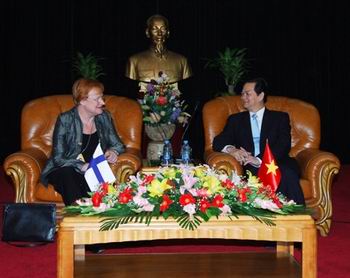 Thủ tướng Nguyễn Tấn Dũng cảm ơn Chính phủ, nhân dân Phần Lan và cá nhân bà Tổng thống đã dành cho Việt Nam tình cảm hữu nghị quý báu trong những năm qua. Hai bên nhất trí sẽ tăng cường quan hệ hợp tác và ủng hộ lẫn nhau trong mọi lĩnh vực và hợp tác trong các diễn đàn quốc tế. Hai bên đã thảo luận về Hội nghị cấp cao ASEM7 sắp tới và nhất trí quan điểm là không vì đối phó với cuộc khủng hoảng kinh tế tài chính mà ảnh hưởng đến cam kết chống nghèo đói và bảo vệ môi trường.