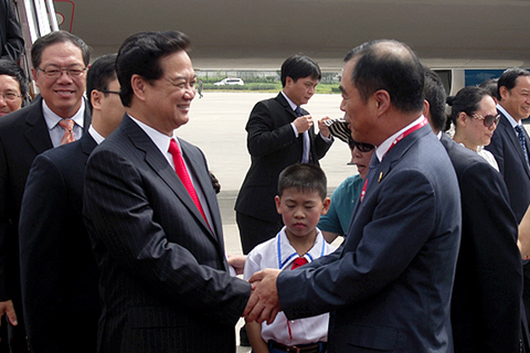 Lãnh đạo Khu tự trị dân tộc Choang Quảng Tây đón Thủ tướng Nguyễn Tấn Dũng tại sân bay. Ảnh: VGP/Nhật Bắc
