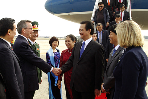 Đón Thủ tướng Nguyễn Tấn Dũng tại sân bay quân sự Andrew, Washington DC, có Đại sứ Scott Marciel, Phó Trợ lý Ngoại trưởng Hoa Kỳ và đại diện Bộ Ngoại giao Hoa Kỳ.
