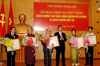 Truy tặng Huân chương Độc lập hạng Ba cho đồng chí Hoàng Du, nguyên Phó Chủ nhiệm Văn phòng Phủ Thủ tướng; Trưởng đoàn chuyên gia kinh tế tại Campuchia; đồng chí Phạm Đức Luật nguyên Trưởng ban Tiếp nhận viện trợ Văn phòng Phủ Thủ tướng nay là Văn phòng Chính phủ.