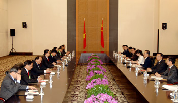 |  | | Thủ tướng Nguyễn Tấn Dũng gặp Thủ tướng Quốc vụ viện CHND Trung Hoa Ôn Gia Bảo - Ảnh Chinhphu.vn | Thủ tướng Ôn Gia Bảo nhiệt liệt hoan nghênh Thủ tướng Nguyễn Tấn Dũng tham dự Diễn đàn Châu Á Bác Ngao 2009, thăm tỉnh Quảng Đông và Hồng Công, Ma Cao, coi đây là sự kiện quan trọng trong quan hệ hữu nghị hợp tác giữa hai nước. Thủ tướng Ôn Gia Bảo khẳng định: Đảng, Chính phủ và nhân dân Trung Quốc hết sức coi trọng phát triển quan hệ với Việt Nam; đánh giá cao những biện pháp mà Đảng, Chính phủ Việt Nam đã và đang áp dụng để ngăn chặn suy giảm kinh tế, ổn định kinh tế vĩ mô; bày tỏ tin tưởng Việt Nam sẽ sớm vượt qua khó khăn, tiếp tục phát triển. Thủ tướng Nguyễn Tấn Dũng chân thành cảm ơn Chính phủ Trung Quốc mời dự Diễn đàn Châu Á Bác Ngao; đánh giá cao nỗ lực của Chính phủ Trung Quốc và chính quyền tỉnh Hải Nam trong việc tổ chức Diễn đàn Bác Ngao lần này; nhấn mạnh, trong bối cảnh khủng hoảng kinh tế toàn cầu, Diễn đàn Bác Ngao 2009 tạo cơ hội để các nước có thể trao đổi đánh giá tình hình cũng như các biện pháp đối phó với tác động của khủng hoảng tài chính-tiền tệ toàn cầu hiện nay. Thủ tướng Nguyễn Tấn Dũng bày tỏ vui mừng trước thành tựu cải cách mở cửa của Trung Quốc, tin tưởng với tiềm lực kinh tế được tích lũy sau 30 năm cải cách mở cửa và các giải pháp đồng bộ mà Chính phủ Trung Quốc áp dụng thời gian qua, Trung Quốc sẽ trở thành quốc gia đầu tiên vượt qua được khủng hoảng, phát huy vai trò tích cực trong việc sớm khắc phục suy thoái kinh tế thế giới và khu vực. |  | | Hai bên bày tỏ hài lòng trước bước phát triển mới trên các lĩnh vực trong quan hệ hai nước thời gian qua - Ảnh Chinhphu.vn | Hai bên bày tỏ hài lòng trước bước phát triển mới trên các lĩnh vực trong quan hệ hai nước thời gian qua; đánh giá cao kết quả phiên họp lần thứ 3 Ủy ban chỉ đạo hợp tác song phương (3/2009); đồng thời nhất trí một số biện pháp quan trọng nhằm duy trì đà phát triển thuận lợi của quan hệ hai nước, trong đó thỏa thuận tiếp tục duy trì các cuộc đi thăm, gặp gỡ của lãnh đạo cấp cao, coi đây là nhân tố không thể thiếu được để đảm bảo cho sự phát triển ổn định của quan hệ hai nước; quyết tâm hoàn thành mục tiêu kim ngạch thương mại song phương đạt 25 tỷ USD vào năm 2010 đi đôi với từng bước cân bằng cán cân mậu dịch; tăng cường thúc đẩy quan hệ giữa các địa phương hai nước, nhất là với các tỉnh phía Nam Trung Quốc; đồng thời nhất trí trên tinh thần đồng chí anh em, quan tâm đến lợi ích của nhau, thông qua hiệp thương hữu nghị, tìm kiếm giải pháp thỏa đáng cho vấn đề còn tồn tại liên quan đến biên giới lãnh thổ. Hai bên nhất trí tăng cường phối hợp trên các vấn đề quốc tế và khu vực. Hai bên cho rằng, việc hai nước hợp tác, chia sẻ kinh nghiệm đối phó với tác động của khủng hoảng sẽ giúp nhau vượt qua khó khăn để cùng tiếp tục phát triển. Hai Thủ tướng nhất trí lấy năm 2010 - năm kỷ niệm lần thứ 60 thiết lập quan hệ ngoại giao hai nước Việt-Trung là “Năm Hữu nghị Việt-Trung”, khẳng định đây là sự kiện quan trọng trong quan hệ hai nước, nhất trí cùng chỉ đạo các ban, ngành hữu quan hai nước phối hợp triển khai tốt các hoạt động trong “Năm Hữu nghị Việt-Trung”, góp phần tăng cường tin cậy, đoàn kết, hữu nghị giữa nhân dân hai nước, thúc đẩy mối quan hệ đối tác hợp tác chiến lược toàn diện giữa hai nước không ngừng phát triển. Thủ tướng Nguyễn Tấn Dũng nhắc lại lời mời Thủ tướng Ôn Gia Bảo sang thăm Việt Nam vào thời điểm thuận lợi. Thủ tướng Ôn Gia Bảo đã vui vẻ nhận lời./. Việt Đông – Nhật Bắc |
