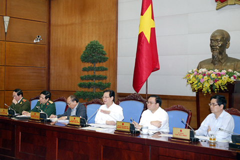 Thủ tướng Nguyễn Tấn Dũng chủ trì cuộc họp chiều 8/11 ban biện pháp ứng phó với siêu bão Haiyan. Ảnh: VGP/Nhật Bắc