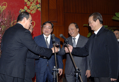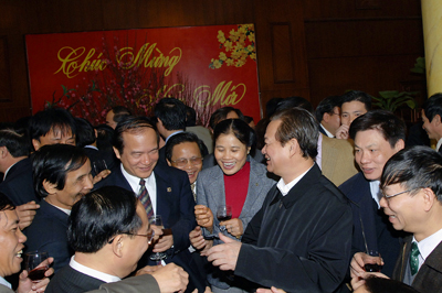Thủ tướng Nguyễn Tấn Dũng và các Phó Thủ tướng Trương Vĩnh Trọng, Nguyễn Thiện Nhân, Hoàng Trung Hải và Bộ trưởng, Chủ nhiệm VPCP Nguyễn Xuân Phúc chúc mừng Năm mới Tân Mão .Ảnh: Chinhphu.vn