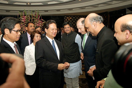 "Việt Nam mong muốn các tập đoàn hàng đầu của Ấn Độ như TATA, IL&FS, ESSAR, GMR tham gia phát triển cơ sở hạ tầng tại Việt Nam, đồng thời tăng cường hợp tác du lịch song phương, đặc biệt là hình thức du lịch tâm linh và du lịch văn hóa…Việt Nam luôn chào đón các doanh nghiệp Ấn Độ tới kinh doanh và đầu tư tại Việt Nam và cam kết tạo điều kiện thuận lợi cho hoạt động của các bạn", Thủ tướng Nguyễn Tấn Dũng khẳng định.