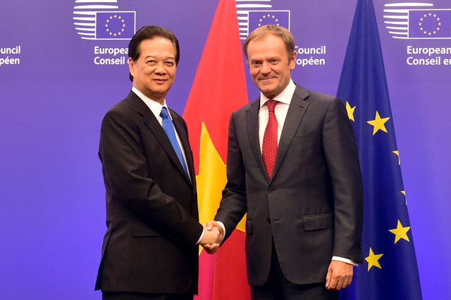 * Trong buổi hội kiến Chủ tịch Hội đồng châu Âu Donald Tusk, Thủ tướng Nguyễn Tấn Dũng đã đề nghị Hội đồng Châu Âu ủng hộ tăng cường trao đổi đoàn các cấp, nhất là cấp cao; ủng hộ hoàn tất phê chuẩn Hiệp định PCA, sớm chính thức ký kết và phê chuẩn Hiệp định EVFTA; ủng hộ việc EU công nhận quy chế kinh tế thị trường cho Việt Nam cùng thời điểm EVFTA có hiệu lực.