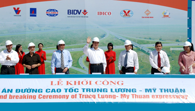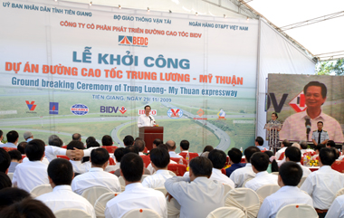 Sáng 29/11, Công ty cổ phần Đầu tư đường cao tốc BIDV (do Ngân hàng Đầu tư và Phát triển Việt Nam chủ trì thành lập) đã tổ chức khởi công xây dựng tuyến đường cao tốc Trung Lương – Mỹ Thuận với chiều dài khoảng 54 km; tổng mức đầu tư khoảng 19.000 tỷ đồng. Thủ tướng Chính phủ Nguyễn Tấn Dũng đã đến dự và phát lệnh khởi công. Cùng dự buổi lễ có Bộ trưởng Bộ Công an Lê Hồng Anh, Bộ trưởng, Chủ nhiệm VPCP Nguyễn Xuân Phúc, lãnh đạo Bộ GTVT, tỉnh Tiền Giang.