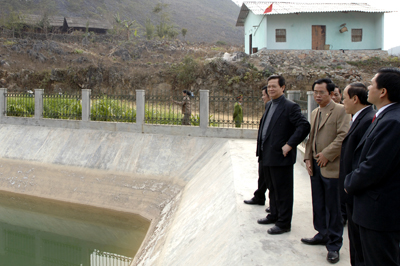 Thủ tướng Nguyễn Tấn Dũng thăm công trình hồ nước treo tại Quản Bạ - Ảnh: Chinhphu.vn