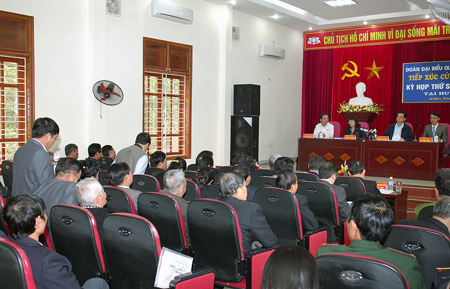 Tại buổi tiếp xúc, các cử tri cho rằng kỳ họp thứ 6 vừa qua của Quốc hội là kỳ họp mang tính lịch sử trọng đại, quyết định nhiều nội dung đặc biệt quan trọng như thông qua Hiến pháp sửa đổi, Luật Đất đai (sửa đổi) và nhiều vấn đề quốc kế dân sinh.
