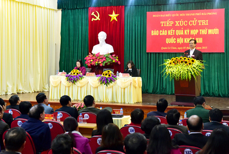 Tại buổi tiếp xúc, các cử tri cũng nêu một số đề xuất, kiến nghị đối với Đảng, Nhà nước và TP. Hải Phòng liên quan đến việc xây dựng cơ chế, chính sách nhằm thu hút các nguồn lực cho đầu tư phát triển; việc giảm thiểu tình trạng quá tải bệnh viện; hỗ trợ ngư dân phát triển nuôi trồng thủy sản, thúc đẩy phát triển kinh tế biển đi đôi bảo vệ độc lập, chủ quyền, lãnh thổ, biển đảo thiêng liêng của Tổ quốc; các giải pháp nâng cao chất lượng nguồn nhân lực, tạo việc làm, tăng thu nhập cho người lao động.
