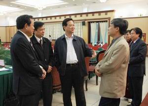 Thủ tướng Nguyễn Tấn Dũng trao đổi với các đại biểu bên lề Hội nghị - Ảnh: Website Chính phủ