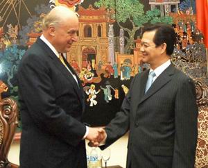 | | | Thủ tướng Nguyễn Tấn Dũng tiếp Thứ trưởng Ngoại giao Hoa Kỳ John Negroponte - Ảnh: Cổng TTĐT Chính phủ | Trong các cuộc tiếp xúc, hai bên đã trao đổi các vấn đề song phương cũng như các vấn đề quốc tế và khu vực cùng quan tâm. Hai bên nhất trí rằng quan hệ song phương giữa Việt Nam và Hoa Kỳ đã phát triển tích cực trên nhiều lĩnh vực, đem lại lợi ích cho nhân dân hai nước và đóng góp vào duy trì hòa bình, ổn định, hợp tác phát triển ở khu vực châu Á. Hai bên bày tỏ lạc quan về tương lai quan hệ hữu nghị và hợp tác giữa hai nước. Phía Hoa Kỳ đánh giá cao sự phát triển kinh tế - xã hội cũng như vị thế và vai trò tích cực của Việt Nam tại khu vực và trên trường quốc tế; cam kết Chính phủ Hoa Kỳ sẽ tiếp tục thực hiện chính sách phát triển quan hệ với Việt Nam. Thứ trưởng John Negroponte khẳng định Chính phủ Hoa Kỳ mong muốn tăng cường hợp tác với Chính phủ Việt Nam trên nhiều lĩnh vực, hỗ trợ hơn nữa cho Việt Nam trong các chương trình rà phá bom mìn, cung cấp thông tin về người Việt Nam mất tích trong chiến tranh và giải quyết hậu quả của chất độc da cam. Ông cũng bày tỏ cảm ơn sự hợp tác có hiệu quả của Việt Nam trong việc tìm kiếm người Mỹ mất tích trong chiến tranh (MIA). | | | Phó Thủ tướng Phạm Gia Khiêm tiếp Thứ trưởng Ngoại giao Hoa Kỳ John Negroponte -Ảnh: Cổng TTĐT Chính phủ | Phía Việt Nam đánh giá cao những nỗ lực của Chính phủ và Bộ Ngoại giao Hoa Kỳ trong việc tăng cường quan hệ và sự hợp tác giữa hai nước trong thời gian qua; cho rằng hai nước cần tiếp tục củng cố vững chắc và hiệu quả quan hệ đối tác hữu nghị, xây dựng, hợp tác nhiều mặt trên cơ sở tôn trọng lẫn nhau, bình đẳng và cùng có lợi đã được khẳng định trong ba bản Tuyên bố chung của lãnh đạo cấp cao hai nước. Thủ tướng Nguyễn Tấn Dũng cho rằng, hiện tại, các chương trình hành động của 4 nhóm công tác giữa Việt Nam và Hoa Kỳ về thương mại và đầu tư, giáo dục, đối phó với biến đổi khí hậu, nước biển dâng đang được hai bên triển khai cụ thể và thiết thực. Hai bên nhất trí sẽ tiếp tục trao đổi các biện pháp nhằm tạo điều kiện thuận lợi hơn cho các hoạt động ngoại giao của mỗi nước, tăng cường đối thoại để xây dựng lòng tin và xử lý các vấn đề hai bên còn khác biệt. Hoàng Minh |