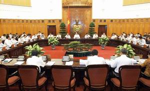 | | Thủ tướng Chính phủ Nguyễn Tấn Dũng: Phấn đấu quyết liệt để đạt các mục tiêu kinh tế-xã hội đã đề ra Ảnh: Cổng TTĐT Chính phủ | Tại phiên họp, lãnh đạo các Bộ Kế hoạch và Đầu tư, Tài chính, Nội vụ, Nông nghiệp và Phát triển nông thôn; Lao động-Thương binh và Xã hội, Tổng Thanh tra Chính phủ, Bộ trưởng, Chủ nhiệm Văn phòng Chính phủ trình bày các báo cáo về Kinh tế - xã hội tháng 8 và 8 tháng đầu năm 2008; ngân sách Nhà nước năm 2008 và dự toán năm 2009; công tác cải cách hành chính; công tác thanh tra, giải quyết khiếu nại, tố cáo và phòng, chống tham nhũng tháng 8/2008; công tác chỉ đạo, đối phó và khắc phục hậu quả cơn bão số 4 vừa qua,... Sản xuất, kinh doanh, đầu tư tiếp tục duy trì ổn định Thảo luận về tình hình kinh tế-xã hội tháng 8 và 8 tháng đầu năm, Thủ tướng Nguyễn Tấn Dũng và các thành viên Chính phủ thống nhất nhận định, mặc dù phải đối phó với nhiều khó khăn, song với sự nỗ lực của các Bộ, ngành Trung ương và địa phương, sản xuất, kinh doanh, đầu tư vẫn duy trì được tốc độ tăng trưởng ổn định. Giá trị sản xuất công nghiệp tháng 8 tăng 16,1% so với tháng 8 năm 2007. Sản xuất nông nghiệp tiếp tục phát triển, dịch bệnh được khống chế, diện tích lúa mùa đã gieo cấy đạt gần 1,4 triệu ha, tăng 0,6% so với vụ mùa năm 2007. Tổng mức bán lẻ hàng hóa và doanh thu dịch vụ tiêu dùng xã hội 8 tháng đầu năm tăng 30% so với cùng kỳ năm 2007. Vốn đầu tư trực tiếp nước ngoài thực hiện trong tháng 8 ước đạt 1 tỷ USD, đưa số vốn thực hiện 8 tháng đầu năm lên 7 tỉ USD, tăng 32,1% so với cùng kỳ năm 2007, là mức cao so với cùng kỳ nhiều năm trước và đã đạt 70% mức dự kiến cả năm 2008. Lĩnh vực tài chính, tiền tệ, giá cả có chuyển biến tích cực, trong tháng 8 hoạt động tiền tệ - tín dụng dần đi vào ổn định. Nhiều ngân hàng thương mại đã hạ mức lãi suất huy động và cho vay. Trong khi giá xăng dầu tăng 31% nhưng chỉ số giá tiêu dùng tháng 8 chỉ tăng 1,56% là một kết quả rất đáng khích lệ. Nhiều loại lương thực, thực phẩm thiết yếu như gạo, đồ chế biến, hàng tiêu dùng, điện máy… giá ổn định và giảm. Bộ trưởng Kế hoạch và Đầu tư Võ Hồng Phúc nhận định: Để đạt được kết quả trên, Chính phủ, Thủ tướng Chính phủ và các Bộ, ngành chức năng đã chỉ đạo quyết liệt công tác điều hành thúc đẩy sản xuất-kinh doanh; kiểm tra giám sát mọi diễn biến của thị trường, hạn chế đến mức thấp nhất những tác động bất lợi cho sản xuất và đời sống. Thủ tướng Nguyễn Tấn Dũng cho rằng, mặc dù đã cố gắng tháo gỡ, song thủ tục hành chính trong đầu tư cơ bản còn nhiều vướng mắc nên tiến độ giải ngân đạt thấp; tỉ lệ giảm nghèo, giảm sinh còn chậm; công tác giải quyết khiếu nại tố cáo tuy đã có những bước chuyển biến tích cực nhưng kết quả còn chưa được như mong muốn. |  | | Phiên họp Chính phủ thường kỳ tháng 8/2008 Ảnh: Cổng TTĐT Chính phủ | Tập trung thực hiện mục tiêu kiềm chế lạm phát và giải quyết những vấn đề xã hội bức xúc Thủ tướng Nguyễn Tấn Dũng nêu rõ: Trong 4 tháng cuối năm 2008, các Bộ, ngành địa phương cần nỗ lực phấn đấu quyết liệt để đạt được các mục tiêu phát triển kinh tế-xã hội đã đề ra. Thủ tướng nhấn mạnh, cần tiếp tục thực hiện quyết liệt và triệt để các giải pháp nhằm kiềm chế lạm phát theo hướng giảm dần, ổn định kinh tế vĩ mô, đảm bảo an sinh xã hội. Trong việc thực hiện chính sách thắt chặt tiền tệ phải có tính linh hoạt, thắt chặt tiền tệ để kiềm chế lạm phát, song cũng phải dành ưu tiên cho mục tiêu tăng trưởng của năm 2008. Biểu dương những chuyển biến quan trọng trong hoạt động xuất khẩu, Thủ tướng Nguyễn Tấn Dũng chỉ đạo Bộ Công Thương cần phối hợp chặt chẽ với các Bộ, ngành hữu quan tiếp tục đẩy mạnh xuất khẩu các mặt hàng được coi là thế mạnh của Việt Nam; đồng thời cần đặc biệt quan tâm kiểm soát chặt chẽ nhập siêu, nhất là đối với các mặt hàng không thiết yếu. Tiếp tục thực hiện chính sách kiểm soát nghiêm ngặt về quản lý thị trường, chống tình trạng đầu cơ, tăng giá thu lời bất chính; xử lý nghiêm những đối tượng tung tin thất thiệt gây tâm lý hoang mang đối với người dân, gây ảnh hưởng xấu đến sản xuất và tiêu dùng. Thủ tướng yêu cầu các Bộ, ngành, địa phương chủ động và tích cực trong việc thực hiện các chính sách về an sinh xã hội nhất là ở những vùng còn gặp nhiều khó khăn. Bộ Thông tin và Truyền thông chỉ đạo các cơ quan thông tin đại chúng đẩy mạnh hơn nữa công tác tuyên truyền về chủ trương, đường lối phát triển kinh tế của đất nước, đảm bảo thông tin đúng, khách quan, trung thực, tránh tình trạng phiến diện, cực đoan. Thủ tướng Nguyễn Tấn Dũng cũng cho ý kiến về kế hoạch phát triển kinh tế xã hội năm 
