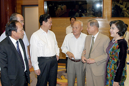 Thủ tướng Chính phủ Nguyễn Tấn Dũng, Trưởng Ban Tuyên giáo Trung ương Đinh Thế Huynh, Phó Thủ tướng Chính phủ Nguyễn Thiện Nhân dự Hội nghị.