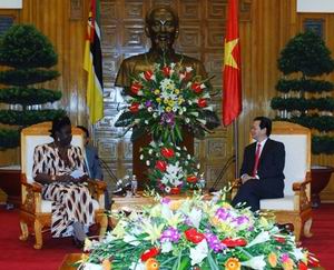 (Cổng TTĐT Chính phủ)- Thủ tướng Nguyễn Tấn Dũng đã nhấn mạnh như vậy trong buổi tiếp bà Luisa Dias Diogo, Thủ tướng Cộng hòa Mozambique, sáng 6/6, nhân dịp bà sang dự Hội nghị Thượng đỉnh Phụ nữ toàn cầu, tổ chức tại Hà Nội từ 5-7/6/2008.