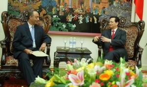 | Ông Ajay Chhiber đánh giá cao sự phát triển của nền kinh tế Việt Nam trong những năm gần đây và cho biết, trong hai tháng qua, Ngân hàng thế giới đã nghiêm túc xem xét và tuyên bố: Việt Nam đủ điều kiện tin cậy tín dụng để tiếp cận nguồn vốn tái thiết và phát triển IBRD của WB Ông cũng cho biết thêm: Ngân hàng thế giới tiếp tục duy trì và sẽ tăng thêm nguồn vốn tài trợ cho Việt Nam từ Hiệp hội phát triển quốc tế (IDA) với mức lãi suất thấp, có lợi cho các nước đang phát triển. Hiện nay, WB tại Việt Nam đang tích cực chuẩn bị Hội nghị các nhà tài trợ cho Việt Nam. Thủ tướng Nguyễn Tấn Dũng cảm ơn tín nhiệm của WB và cho rằng: Sự thành công của nền kinh tế Việt Nam trong những năm qua có sự đóng góp tích cực của WB. Những chương trình tư vấn chính sách, tài trợ vốn cho một số dự án của Việt Nam đã đem lại lợi ích thiết thực. Thủ tướng khẳng định: Chính phủ Việt Nam sẽ sử dụng có hiệu quả các nguồn vốn vay của WB để phát triển nền kinh tế Việt Nam bền vững và đẩy mạnh công cuộc xóa đói giảm nghèo. Việt Nam sẽ phát huy tối đa sự trợ giúp của WB và bạn bè quốc tế. Việt Đông |