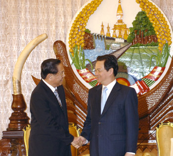 Thủ tướng Nguyễn Tấn Dũng vui mừng về những thành tựu đất nước Lào đạt được trong những năm qua. Đặc biệt trước biến động của nền kinh tế thế giới hiện nay, Lào cũng như Việt Nam vẫn giữ vững ổn định kinh tế và có bước tăng trưởng khá. Năm 2008, Chính phủ hai nước đã thực hiện tốt các thỏa thuận hợp tác, nhiều công trình dự án hợp tác được triển khai thực hiện đúng kế hoạch, đặc biệt, kim ngạch thương mại 2 chiều Việt - Lào năm 2008 đạt 450 triệu USD.