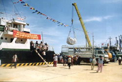 Tàu đang bốc dỡ hàng trong Cảng Kỳ Hà (Khu kinh tế mở Chu Lai)