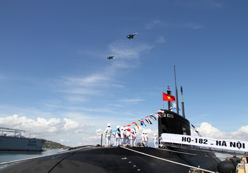 Cờ Tổ quốc tung bay trên 2 tàu ngầm Kilo 636 Hà Nội và TP Hồ Chí Minh