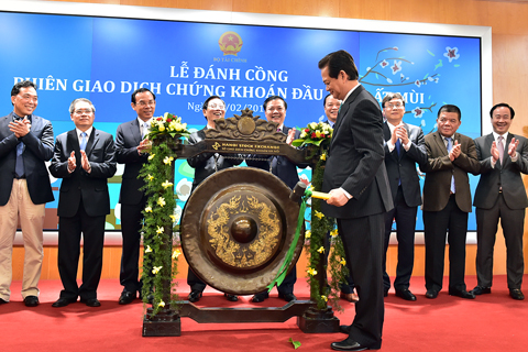 (Chinhphu.vn) - Tiếng cồng mà Thủ tướng gióng lên từ ngôi nhà số 2 phố Phan Chu Trinh, Sở Giao dịch Chứng khoán Hà Nội chính thức khai trương phiên giao dịch đầu Xuân Ất Mùi lúc 10 giờ sáng nay (24/2) không chỉ làm cho các nhà đầu tư kỳ vọng TTCK sẽ bùng nổ mà còn như một thông điệp, như hồi trống giục giã - khẩn trương hoàn thiện thể chế kinh tế thị trường định hướng XHCN để Việt Nam phát triển ngày càng vững mạnh.
