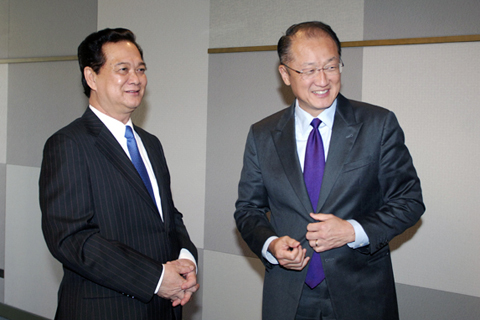 (Chinhphu.vn) – Ngày 26/9, Thủ tướng Chính phủ Nguyễn Tấn Dũng và Chủ tịch Ngân hàng Thế giới (WB) ông Jim Yong Kim đã hội kiến tại Trụ sở của Ngân hàng Thế giới ở Washington DC, Hoa Kỳ, thảo luận về những thành tựu phát triển kinh tế ấn tượng của Việt Nam và thách thức phía trước.